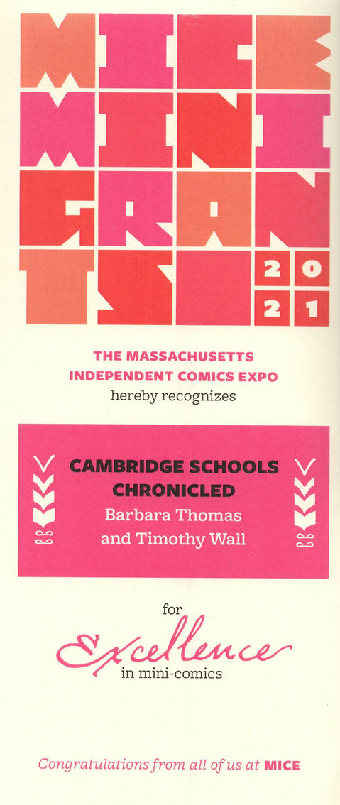 Yippee!!! Timothy and I are happy to announce that we're the winners of a 2021 MICE Mini-Grant. Purchase our latest issues at Million Year Picnic in Cambridge, MA or online at Radiator Comics.